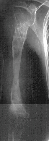 A third case of a 13 year one month old girl with 12.3 cm shortening of the left arm, was reported by Peterson. The etiology was not clear. There might have been a birth fracture or an infection ( either septic arthritis or osteomyelitis of the proximal humerus ) either in the newborn period or later. The patient underwent Wagner technique of osteotomy and gradual distraction. One hundred millimeters of length was obtained. Thirteen weeks after the original operation, the second stage surgery consisting of bone grafting, application of plate and screws and removal of the external lengthening device.