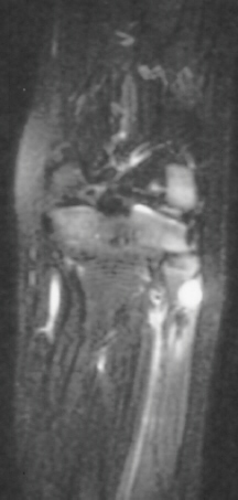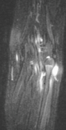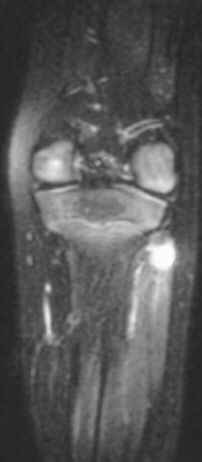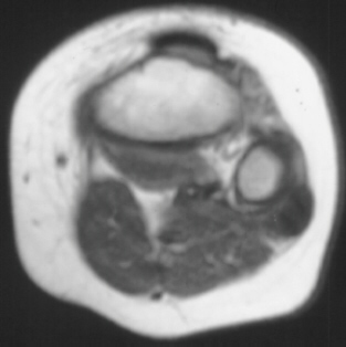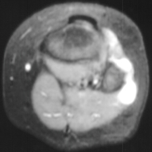 A fullness of the soft tissues was evident over the fibular head. MRI examination