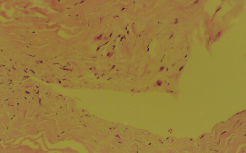 The microscopic appearance of ganglion cysts is conspicous for the absence