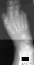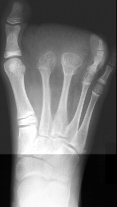 She has an increased soft tissue bulk in the forefoot. The skin is otherwise in good condition, no areas of breakdown. It is non tender and incisions are all well healed. X-rays reveal the metatarsal and phalangeal physes are still open. Family History is negative.