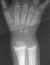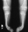 She was diagnosed with nutritional rickets and was treated with Calciferol 1200ug\day. Her first follow-up was 5 weeks later where she was noted to have a decreased Trendelenburg lurch and a decrease in her wrist thickening. 10 months later on follow-up she had a noticeable decrease in her tibial bowing along with almost complete resolution of the growth plate abnormalities. At her last follow-up on March 4th 1996 (she was 4 + 4yo) she had mild anterior lateral bowing of her tibia bilaterally with a normal thigh-foot angle and a mechanical axis that crossed the midline of her knee.