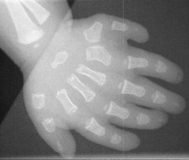 the child grows, she may develop varus deformity of the knees. These deformities