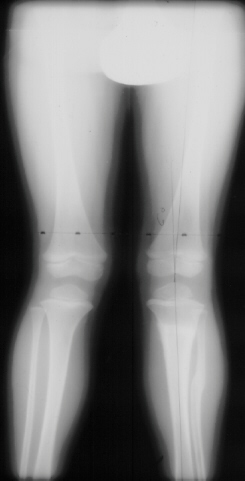 The x-ray at 9 months post surgery showed the mechanical axis on the left