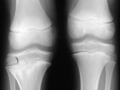 1 cm shortening of the right leg and a 10 degree valgus deformity