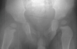 6 the child's temperature spiked to 103.4. The right hip x-ray